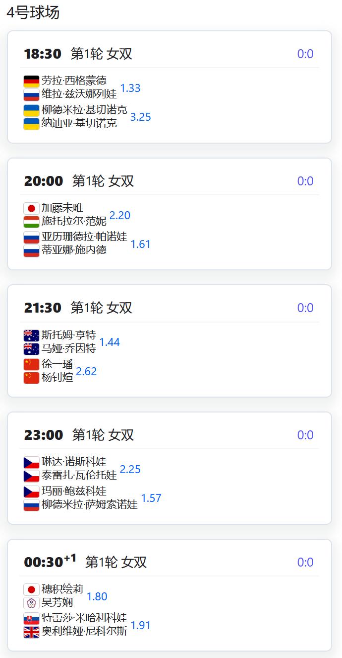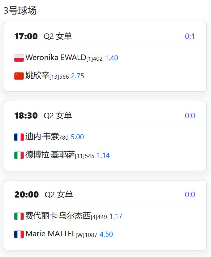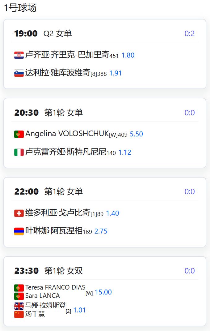 WTA1000赛多哈站,女单第一轮,中国金花郑钦文正式复出,将对阵前澳网冠军肯宁; 王欣瑜面临一日双赛考验:先是单打对阵阿郎戈,再搭档郑赛赛出战双打对阵费尔南德斯/梅拉德诺维奇; 徐一璠/杨钊煊将对阵澳洲组合亨特/乔恩特; W125奥埃拉什,女双第一轮,汤千慧搭档拉姆斯登首轮对阵本土外卡组合; W50格勒诺布尔,女单资格赛第二轮,姚欣辛将与头号种子EWALD争夺一个正赛席位。