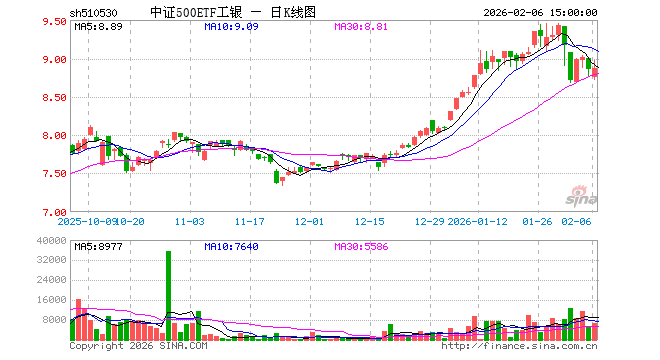 2月6日,中证500ETF工银(510530)涨0.10%,成交额604.42万元。当日份额增加50.00万份,最新份额为5047.94万份,近20个交易日份额增加400.00万份。最新资产净值计算值为4.47亿元。