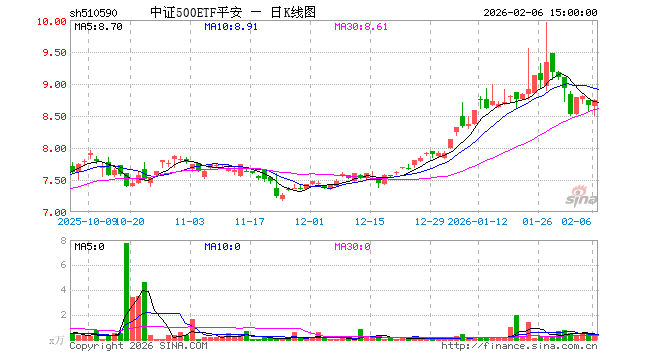 中证500ETF平安(510590)业绩比较基准为中证500指数收益率,管理人为平安基金管理有限公司,基金经理为李严,成立(2018-03-23)以来回报为62.15%,近一个月回报为4.27%。