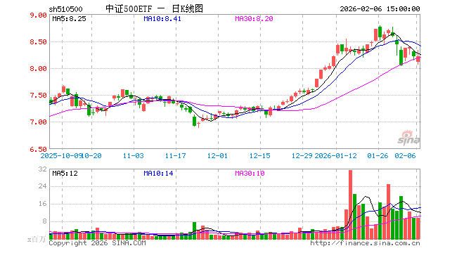 2月6日,中证500ETF(510500)跌0.05%,成交额77.42亿元。当日份额增加2.74亿份,最新份额为112.83亿份,近20个交易日份额减少82.39亿份。最新资产净值计算值为927.71亿元。