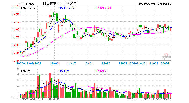 2月6日,日经ETF工银(159866)涨0.36%,成交额7875.89万元。当日份额增加100.00万份,最新份额为6.84亿份,近20个交易日份额增加1500.00万份。最新资产净值计算值为9.58亿元。
