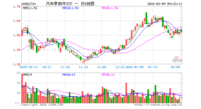 2月9日,汽车零部件ETF(562700)开盘涨1.32%,报1.540元。汽车零部件ETF(562700)重仓股方面,汇川技术开盘涨0.95%,三花智控涨1.13%,福耀玻璃涨0.74%,拓普集团涨1.32%,长盈精密涨3.17%,赛轮轮胎涨0.67%,德赛西威涨1.25%,双环传动涨1.77%,银轮股份涨3.17%,华域汽车涨0.89%。
