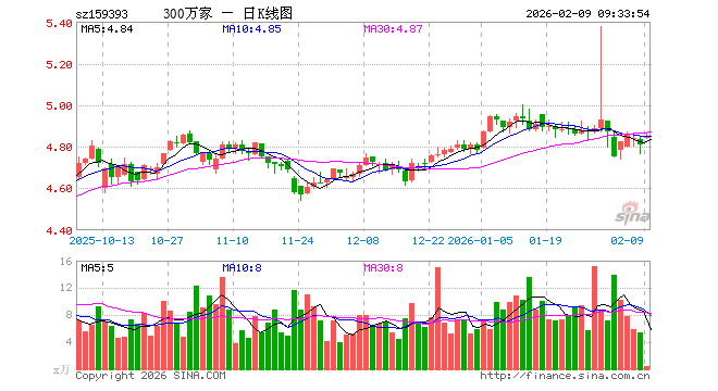 2月9日,沪深300ETF万家(159393)开盘涨0.60%,报4.840元。沪深300ETF万家(159393)重仓股方面,宁德时代开盘涨0.38%,贵州茅台涨0.20%,中国平安涨0.82%,中际旭创涨3.89%,紫金矿业涨3.50%,招商银行涨0.00%,新易盛涨4.37%,美的集团跌0.45%,兴业银行涨0.00%,长江电力涨0.04%。