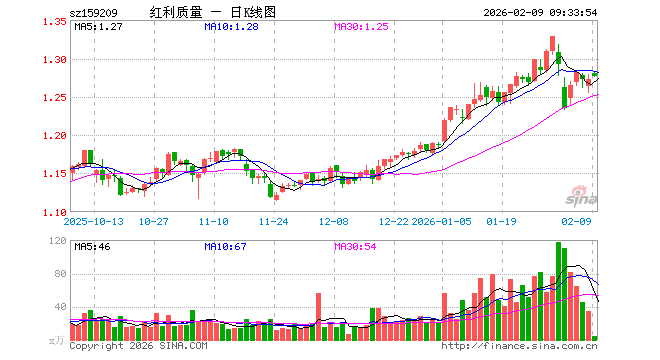 2月9日,中证红利质量ETF(159209)开盘涨0.63%,报1.280元。中证红利质量ETF(159209)重仓股方面,贵州茅台开盘涨0.20%,三七互娱涨1.43%,山金国际涨1.06%,中国神华涨0.48%,美的集团跌0.45%,中国太保涨1.21%,福耀玻璃涨0.74%,亿联网络涨1.29%,云铝股份涨1.74%,双汇发展涨0.00%。