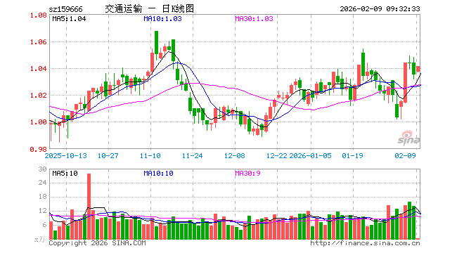 2月9日,交通运输ETF(159666)开盘涨0.19%,报1.037元。交通运输ETF(159666)重仓股方面,京沪高铁开盘涨0.20%,中远海控涨0.07%,顺丰控股涨0.44%,大秦铁路涨0.39%,中国东航涨0.00%,南方航空跌0.73%,上海机场涨0.26%,中国国航涨0.00%,春秋航空涨0.58%,招商轮船涨2.55%。
