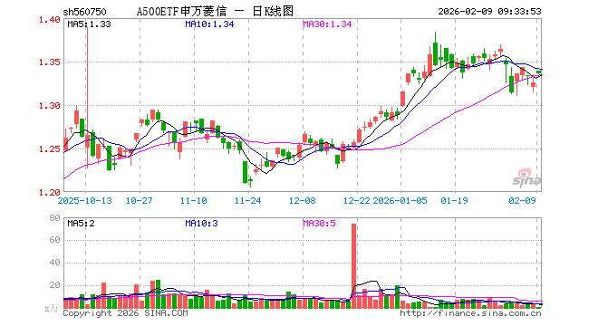 A500ETF申万菱信(560750)业绩比较基准为中证A500指数收益率,管理人为申万菱信基金管理有限公司,基金经理为王赟杰,成立(2025-01-22)以来回报为32.48%,近一个月回报为-0.96%。