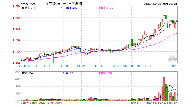 2月9日,油气ETF汇添富(159309)开盘涨0.88%,报1.376元。油气ETF汇添富(159309)重仓股方面,中国石油开盘跌0.74%,中国海油跌0.29%,中国石化涨0.00%,杰瑞股份涨2.76%,招商轮船涨2.55%,广汇能源涨0.18%,中远海能涨2.38%,洲际油气涨1.82%,海油工程跌0.76%,招商南油涨1.11%。