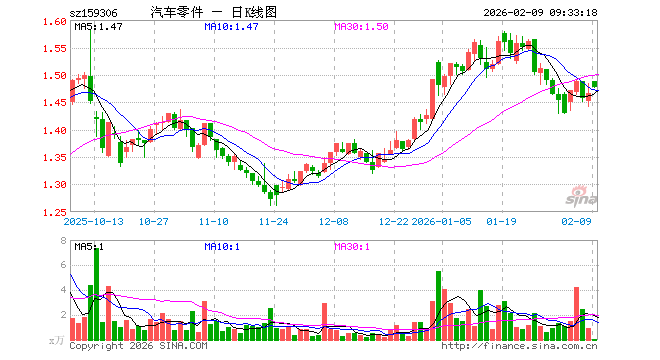 2月9日,汽车零件ETF(159306)开盘涨1.43%,报1.487元。汽车零件ETF(159306)重仓股方面,汇川技术开盘涨0.95%,三花智控涨1.13%,福耀玻璃涨0.74%,拓普集团涨1.32%,长盈精密涨3.17%,赛轮轮胎涨0.67%,德赛西威涨1.25%,银轮股份涨3.17%,双环传动涨1.77%,华域汽车涨0.89%。