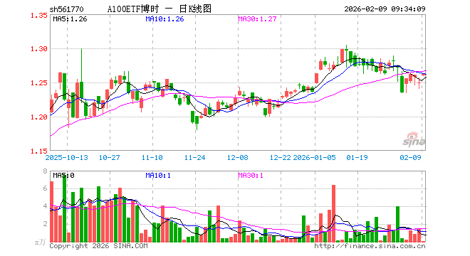 2月9日,A100ETF博时(561770)开盘涨0.80%,报1.260元。A100ETF博时(561770)重仓股方面,宁德时代开盘涨0.38%,贵州茅台涨0.20%,中国平安涨0.82%,中际旭创涨3.89%,紫金矿业涨3.50%,招商银行涨0.00%,美的集团跌0.45%,长江电力涨0.04%,寒武纪涨2.22%,东方财富涨0.66%。