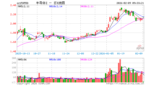 2月9日,半导体设备ETF易方达(159558)开盘涨1.53%,报2.125元。半导体设备ETF易方达(159558)重仓股方面,北方华创开盘涨1.45%,中微公司涨1.62%,拓荆科技涨1.72%,长川科技涨2.36%,沪硅产业跌0.77%,华海清科涨2.05%,中科飞测涨2.08%,南大光电涨4.30%,安集科技涨1.85%,芯源微涨5.42%。