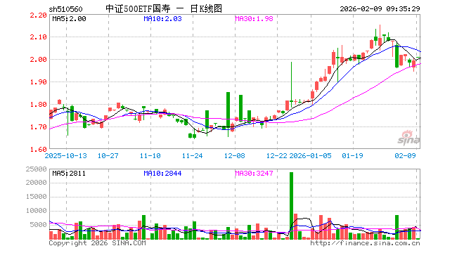 2月9日,中证500ETF国寿(510560)开盘涨0.85%,报2.008元。中证500ETF国寿(510560)重仓股方面,英维克开盘涨3.00%,信维通信涨1.94%,巨人网络涨1.62%,中矿资源涨2.30%,中国卫星涨1.92%,航天电子涨2.65%,先导智能涨1.66%,卧龙电驱涨1.51%,赤峰黄金涨2.40%,兴业银锡涨5.16%。
