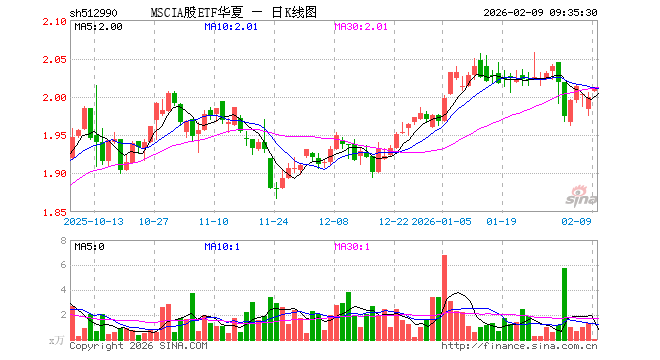 2月9日,MSCIA股ETF华夏(512990)开盘涨0.40%,报2.007元。MSCIA股ETF华夏(512990)重仓股方面,贵州茅台开盘涨0.20%,宁德时代涨0.38%,招商银行涨0.00%,工业富联涨3.31%,中国平安涨0.82%,紫金矿业涨3.50%,中际旭创涨3.89%,长江电力涨0.04%,农业银行跌0.60%,寒武纪涨2.22%。