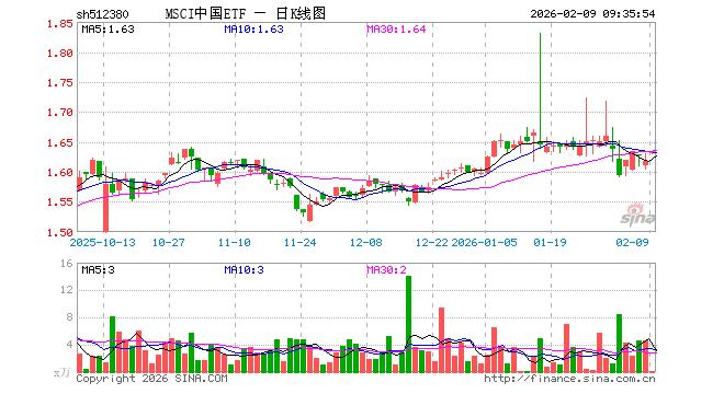2月9日,MSCI中国ETF(512380)开盘涨0.74%,报1.630元。MSCI中国ETF(512380)重仓股方面,贵州茅台开盘涨0.20%,宁德时代涨0.38%,招商银行涨0.00%,工业富联涨3.31%,中国平安涨0.82%,紫金矿业涨3.50%,长江电力涨0.04%,中际旭创涨3.89%,农业银行跌0.60%,寒武纪涨2.22%。