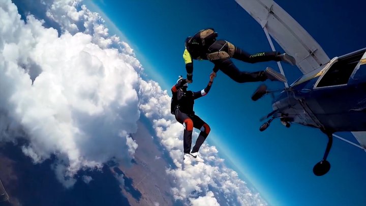 从千米高空纵身跃下,跟着教练在空中转了几个圈。那种自由的感觉,湖北游客姚小文说,她“一辈子都忘不了”。去年冬天,她特意把人生第一次跳伞安排在了生日当天,地点选在杭州建德航空小镇。