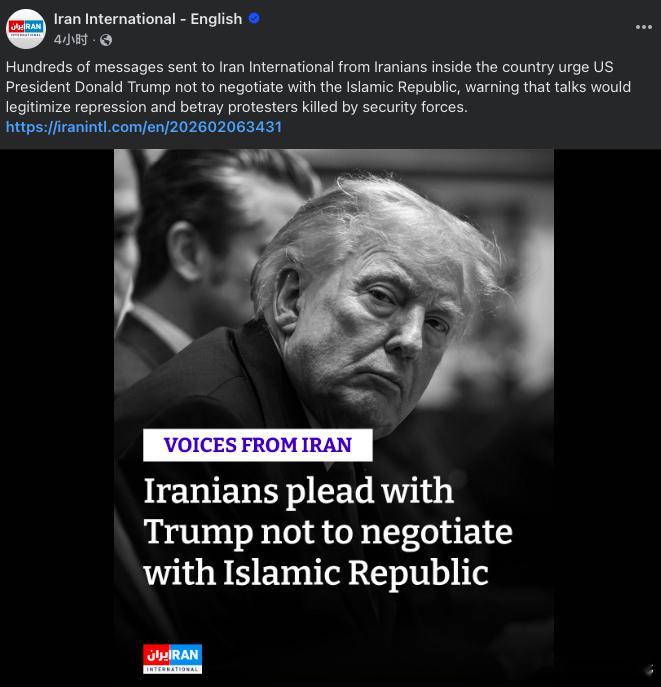 伊朗 美国计划的对伊朗的军事打击表演现在连声儿都没有了,但是很多伊朗人还不肯死心,他们请求哈梅内伊的朋友特朗普不要与教士集团进行谈判,他们说谈判将使镇压行为合法化,并背叛那些被杀害的伊朗抗议者。