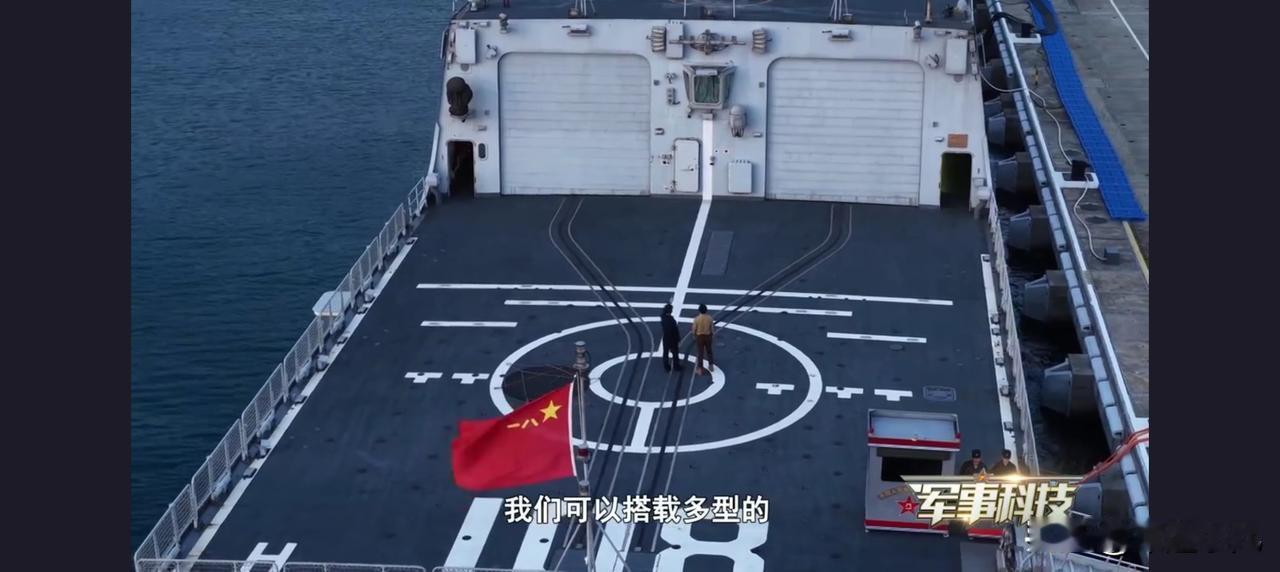 055万吨大驱最新画面曝光,到底是单机库还是双机库? 这个视角的055万吨大驱后甲板,可以清晰看到配置的是双机库,官兵也向记者说明了,双机库可以搭载更多多型的直升机和无人机,既可以搭载两架舰载直升机,也可以,一个机库搭载直升机,另外一个机库,搭载各型无人机! 画面中,可以清晰看到,由两个机库延伸出来的轨道,便于出动和回收舰载直升机或无人机,另外,那个长方形的位置,很有可能也是可以升降的机构,毕竟052D改进型,已经公开了这个类似的长方形升降机,可以快速运输弹药和无人机! 055的后甲板,就是大啊,通过航拍视角,人物和甲板面积对比,就能看出来了! 大家怎么看呢?055大驱
