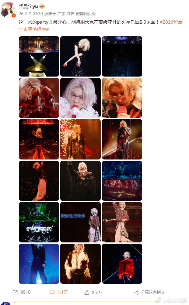 华晨宇期待跟大家在火星乐园2.0见面华晨宇凌晨三点多发文,这是又失眠了吧,生日场没睡好,收官场又没睡好,看得出来,这三天的party你确实非常开心,太期待火星乐园2.0了,我们一起建造属于火星人的家,期待我们一起回家2026华晨宇火星演唱会