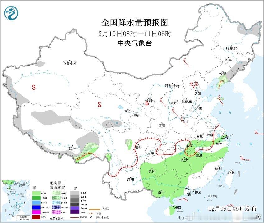 【雨雪】昨天到今晨,西南地区的降水向东发展,湖北西部、湖南西北部等地出现降雪。今晨湖北宜昌一带大雪纷飞,宜昌积雪达到了5厘米。今明2天,高空槽东移,降水继续向东推进。今天白天在湖北西部、湖南北部还有降雪或雨夹雪,今晚到明晨,山东、江苏北部有降雪或雨夹雪。今天贵州东北部、湖南西部等地高海拔山区有冻雨。
