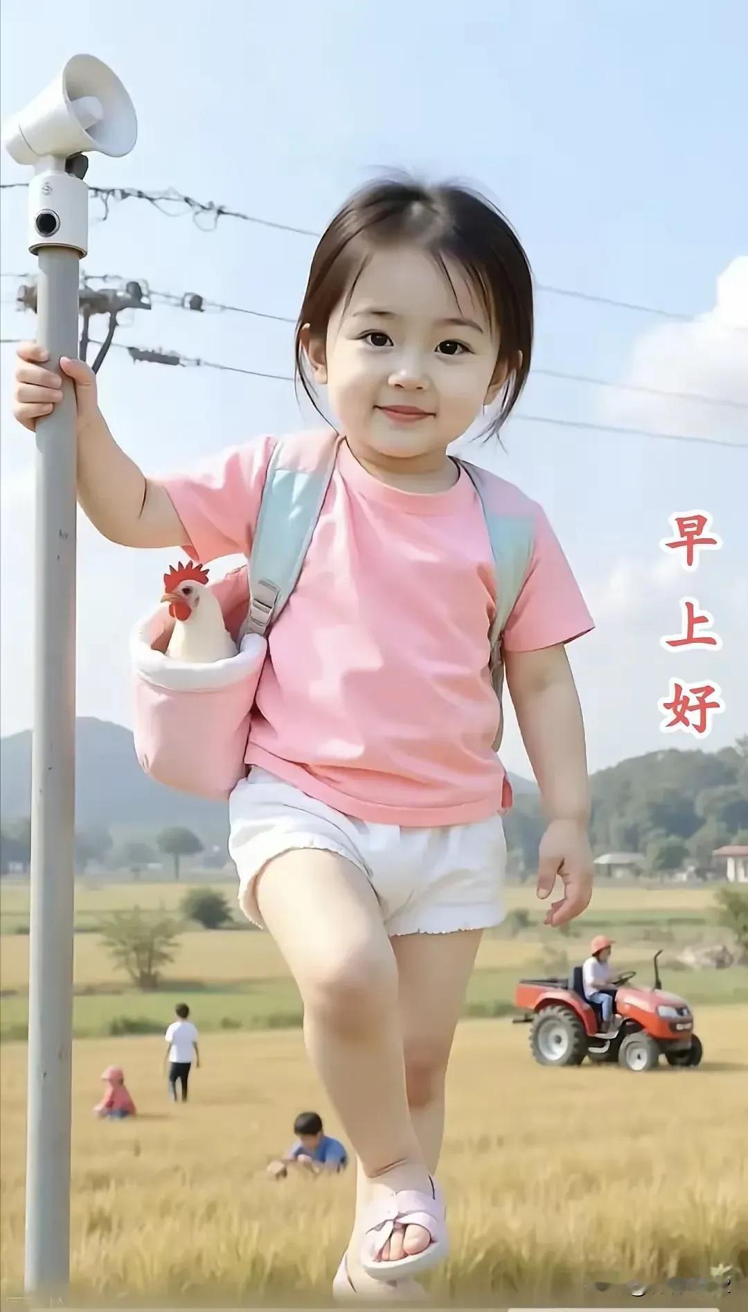 清晨的阳光如碎金般洒落在青翠的草地上,微风轻拂,带来泥土与野花的芬芳。一声清脆的“早上好”划破宁静,仿佛唤醒了整个田野。小小牧童,头戴一顶草编的斗笠,赤着脚丫踩在柔软的泥土上,裤腿高高卷起,露出晒得微红的小腿。他蹦跳着走在田埂上,像一只自在的小鸟,嘴里哼着不成调的乡间小曲,笑声如银铃般在空旷的原野上回荡。 他手中的竹篮里,躺着几只雪白的鹅,毛茸茸的,偶尔扑腾一下翅膀,发出“咕咕”的轻鸣。牧童时不时低头看一眼,脸上漾起纯真的笑容,仿佛这些鹅不是家禽,而是他最亲密的伙伴。他轻轻抚摸着鹅的羽毛,像在守护一份珍贵的宝藏。篮子随着他的步伐轻轻晃动,阳光洒在鹅羽上,泛出柔和的光晕,宛如一幅流动的田园画卷。 童真无价——那是一种未被世俗沾染的清澈,是眼里有光、心中有梦的纯粹。他不需要名利,不追逐繁华,只一片草地、几只鹅、一缕晨光,便足以装满整个世界的快乐。他的快乐无限,像天边的云朵,自由飘荡;像溪中的流水,永不停歇。这份简单而丰盈的喜悦,不来自物质的堆砌,而源于与自然相融的每一刻,源于内心最本真的满足。 在这喧嚣的世界里,愿我们都能记得清晨的牧童,记得那份不被定义的纯真,记得:真正的幸福,有时不过是一声“早上好”,一个微笑,和篮里几只安睡的鹅。
