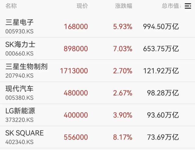 个股方面,三星电子、SK海力士均大涨超5%。
