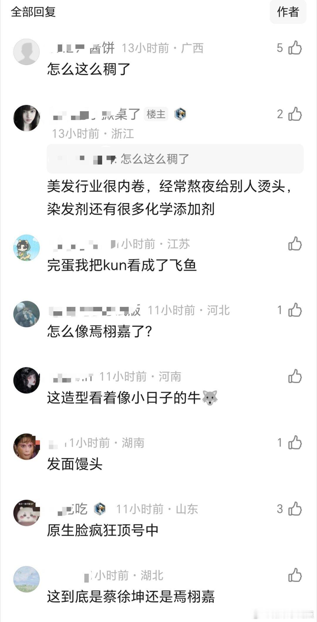 蔡徐坤昨天的直播造型被网友吐槽像是做美发的