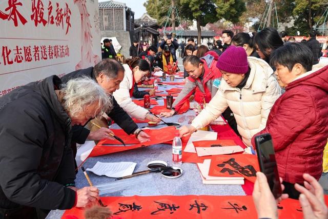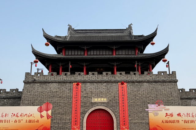 位于新吴区的梅里古镇上周迎来了一年一度的“城门挂春联”活动,一副为梅里量身定制的巨幅春联缓缓展开,玄关于城门两侧,城门旁“春在梅里·年货集市”热闹开市。“城门春联一挂,这年味就有了!”闻讯赶来置办年货的市民王女士望着红底黑字的城门对联开心地说。今年的对联由知名楹联家王金梁撰联,上联是“梅香古镇,马耀新程,三春有约,江南景”,下联是“德润家园,仁融邻里,五福临门,中国年”,既勾勒梅里江南风韵,又藏着泰伯德治内核,更暗合马年奋进之意。热闹的年货集市也为大年初九在此举办的世界级非遗泰伯庙会提前预热,让新春暖意持续升温。