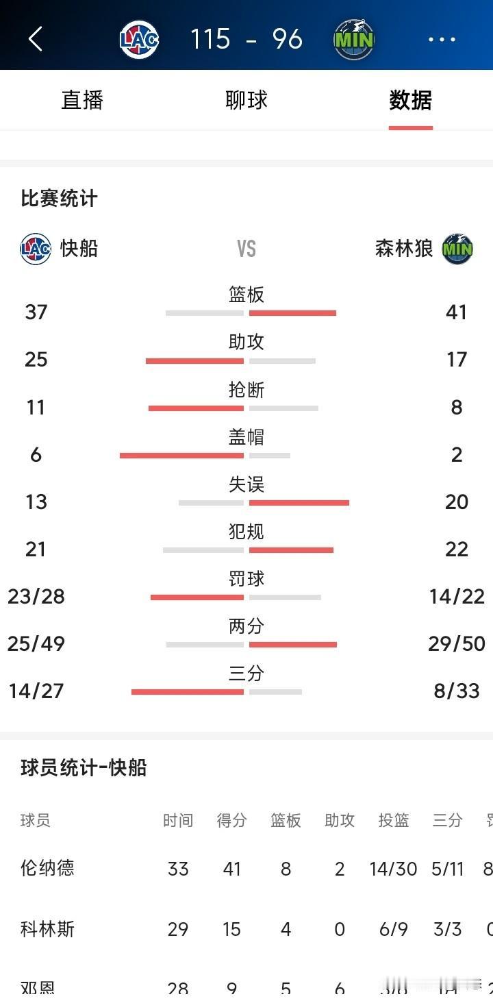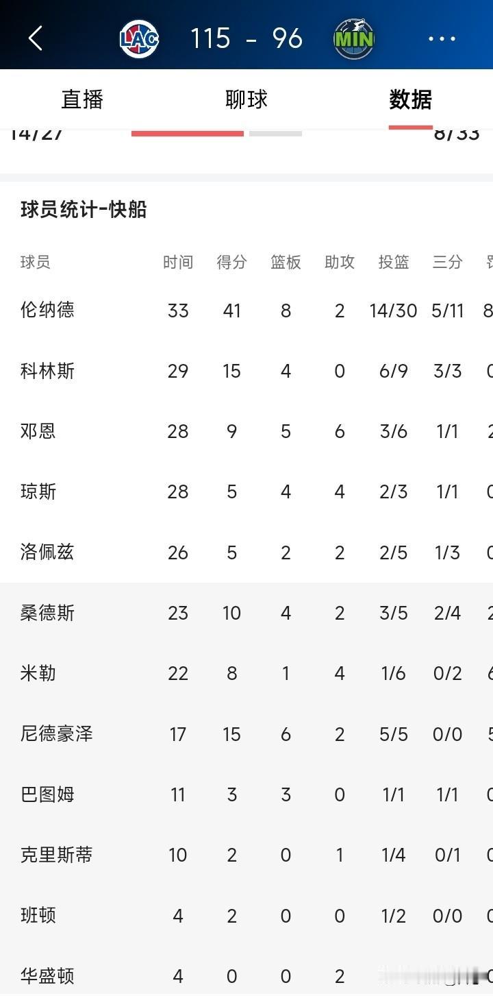 没有哈登的快船,伦纳德不得不加强进攻火力,没有哈登分担进攻火力,伦纳德只能增加出手次数。今天快船对阵森 林狼,没想到快船在缺少祖巴茨和哈登的情况下,伦纳德还能爆砍41分,带队取胜。不得不说伦纳德确实是强,希望不要过度透支。 也希望快船能进季后赛,和骑士总决赛见,那画面不敢相信。 快船打的人很多,教练会用才是硬道理,能进NBA没有弱者。