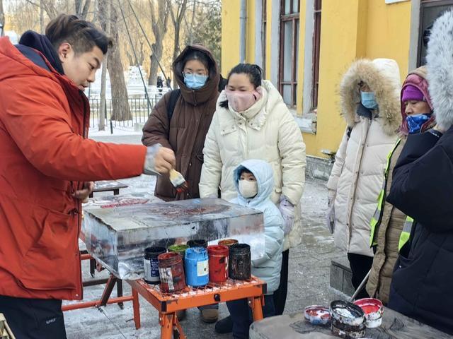 他的作品里,既有北国风光的壮阔,又有新春佳节的喜庆,每一张冰版画都承载着对家乡的深情。面对游客们惊喜的目光、真诚的赞美,他总能找回满身疲惫后的动力。有游客特意带着他的冰内雕花作品合影,说要把“冰城的记忆”带回家;也有游客捧着他现场赠送的成品冰版画,激动地反复端详,连连称赞这是最特别的新春礼物;有小朋友上完研学课,拉着他的手说“以后也要学习冰版画”。这些瞬间,让他更加坚定了传承的初心,也让他始终坚信:“令我最满意的作品永远是下一个,我想为家乡创作更多更好的作品,让冰版画这门技艺传递更多温暖与祝福。”