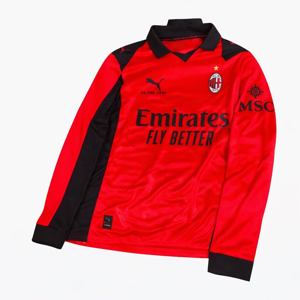 AC米兰与PUMA、Slam Jam联名的第四款球衣将推出红色与白色两个版本,均