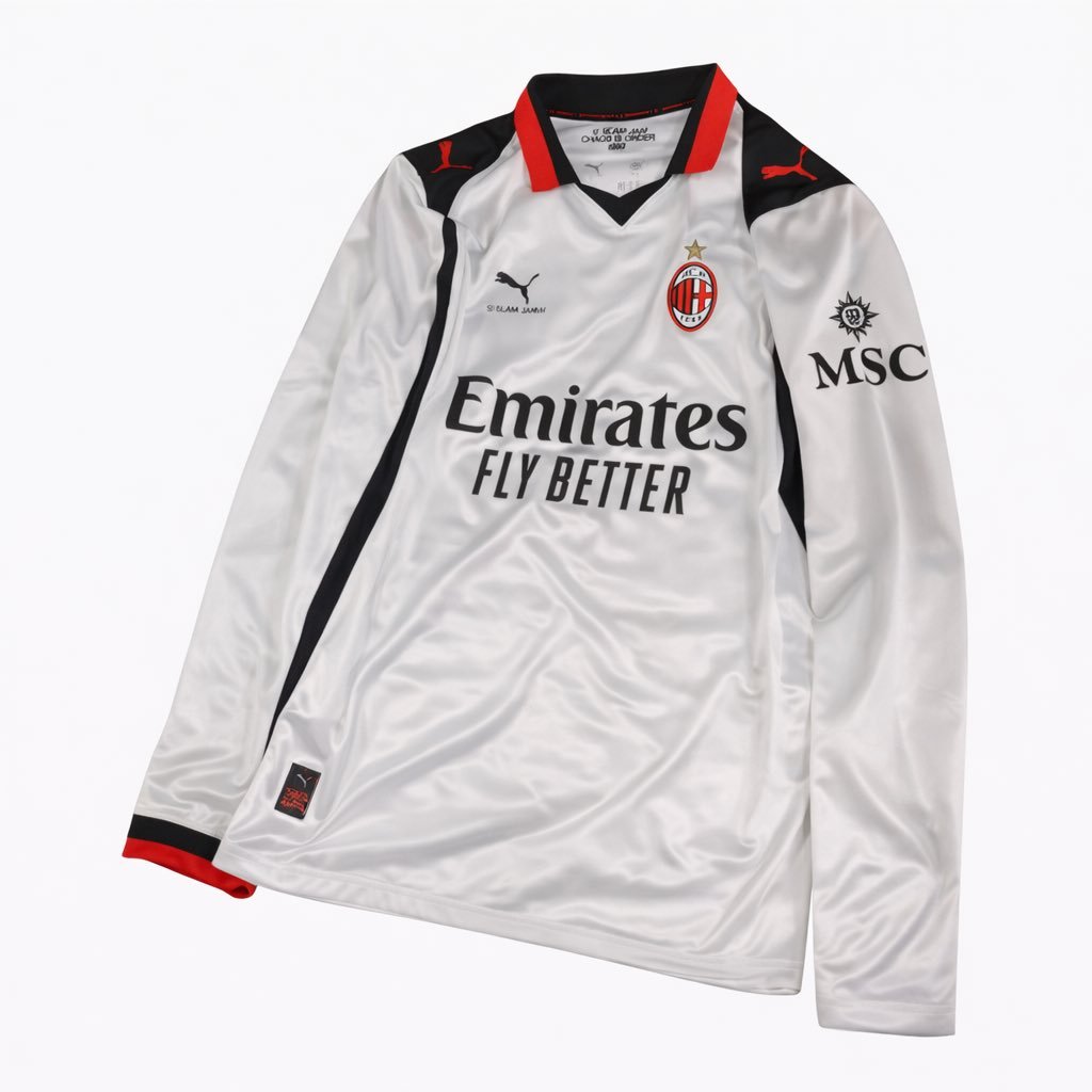 AC米兰与PUMA、Slam Jam联名的第四款球衣将推出红色与白色两个版本,均采用亮面工艺处理。sempremilan