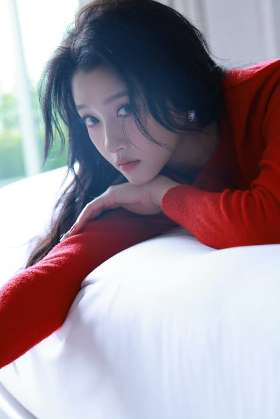 关晓彤工作室发了侧拍花絮,红色好喜庆啊