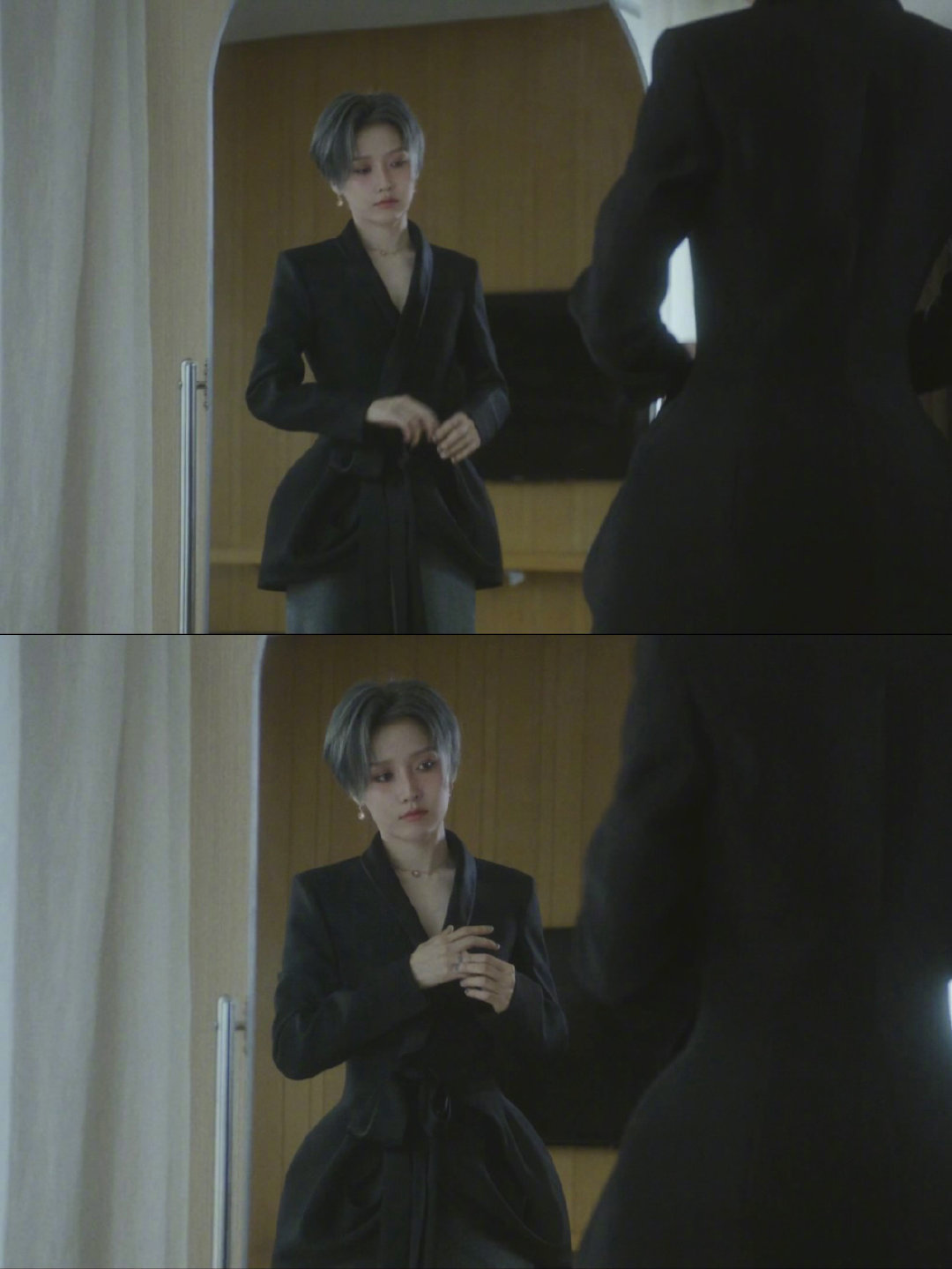 刘雨昕Dior温柔序曲 黑灰系西装造型太有格调,挺括的面料勾勒利落身形,简约的配