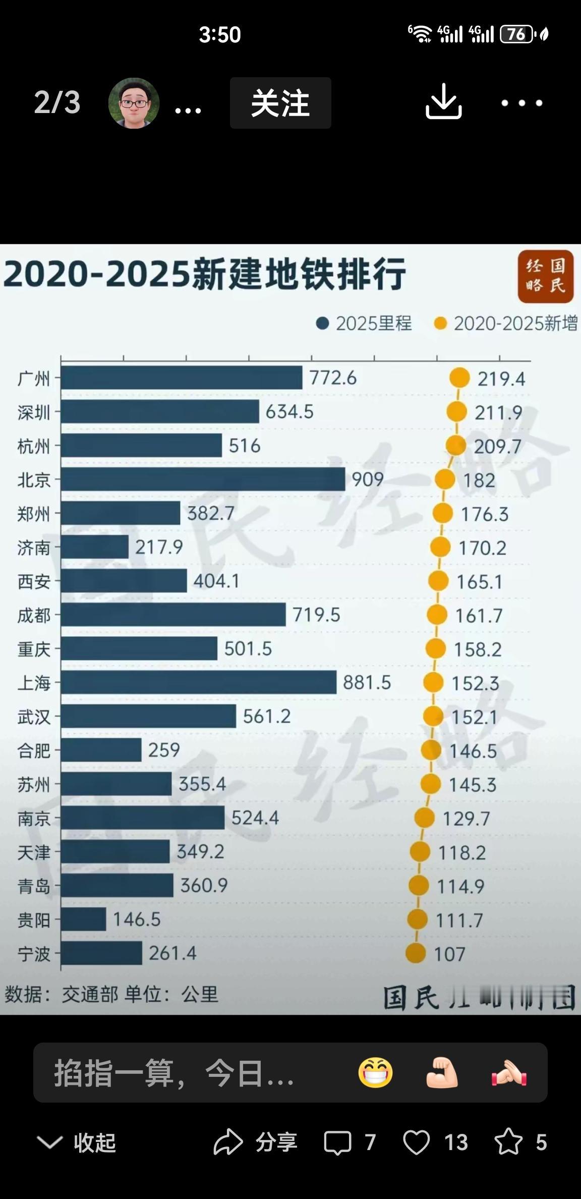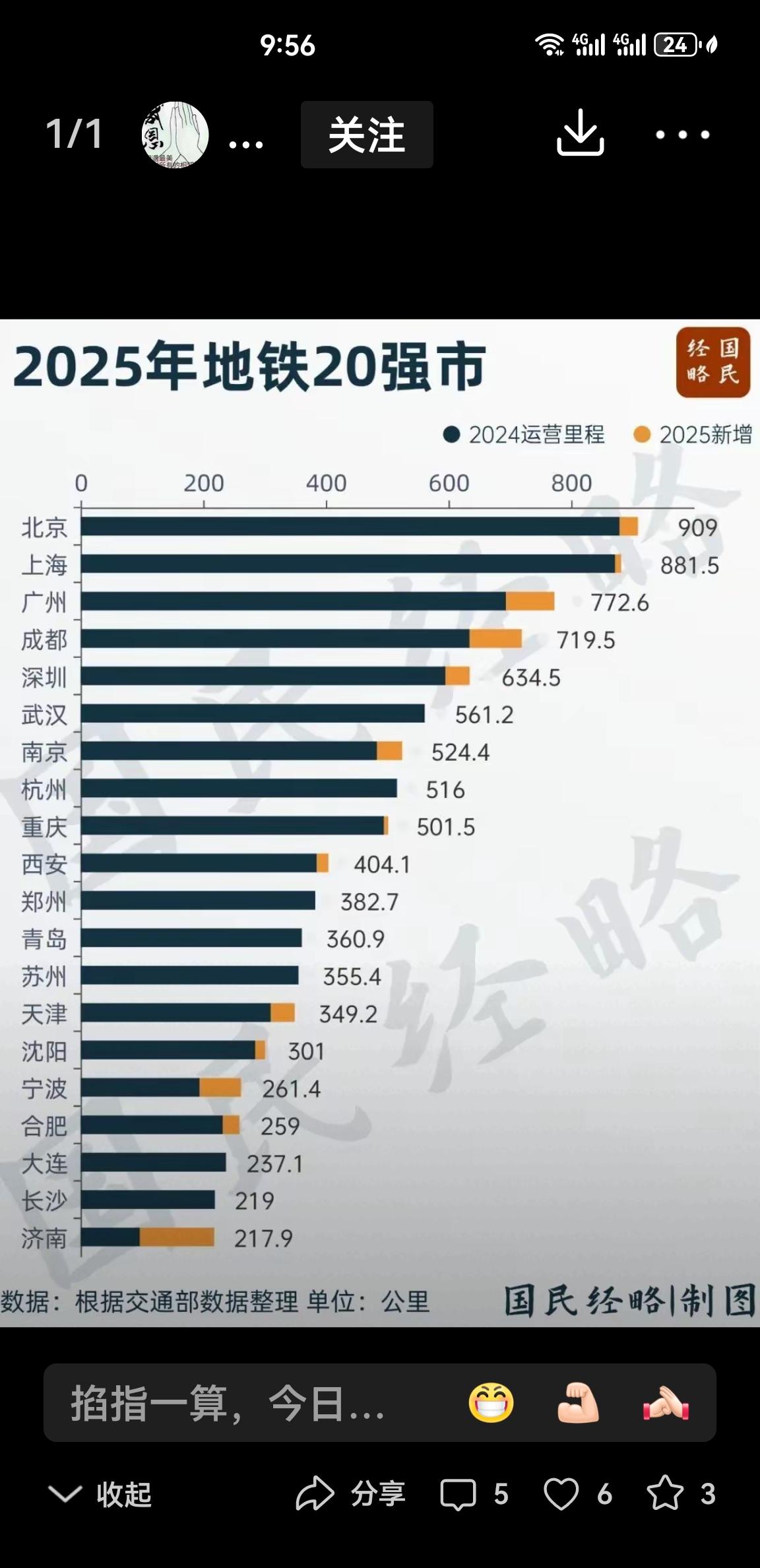 快讯!上周末西安地铁客流量和客流强度均获全国特大城市第六,再次说明西安的城市活力依然居全国前列,未来科技创新和高质量发展不可限量,祝福西安![赞][赞][赞]