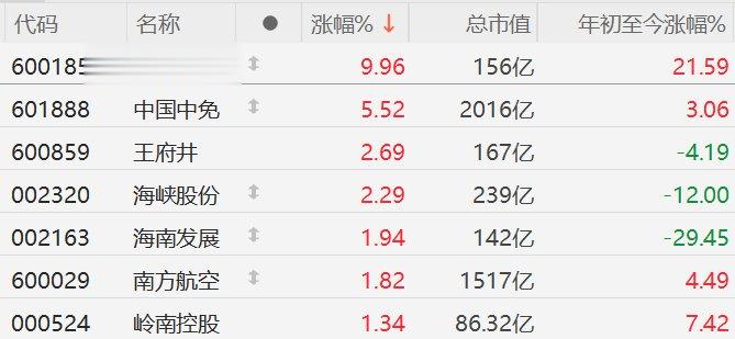 A股免税股走强,珠免集团涨停,中国中免涨超5%