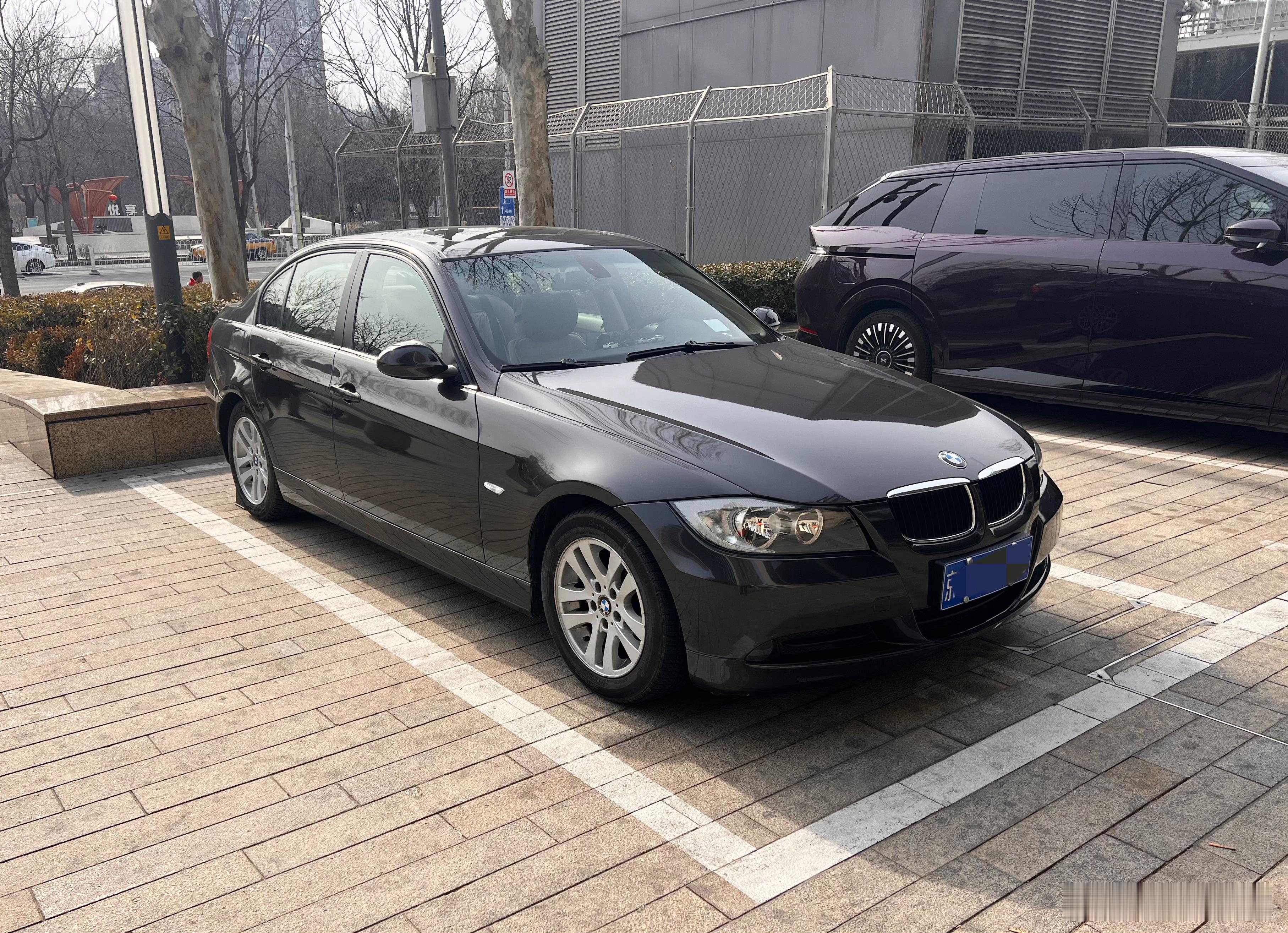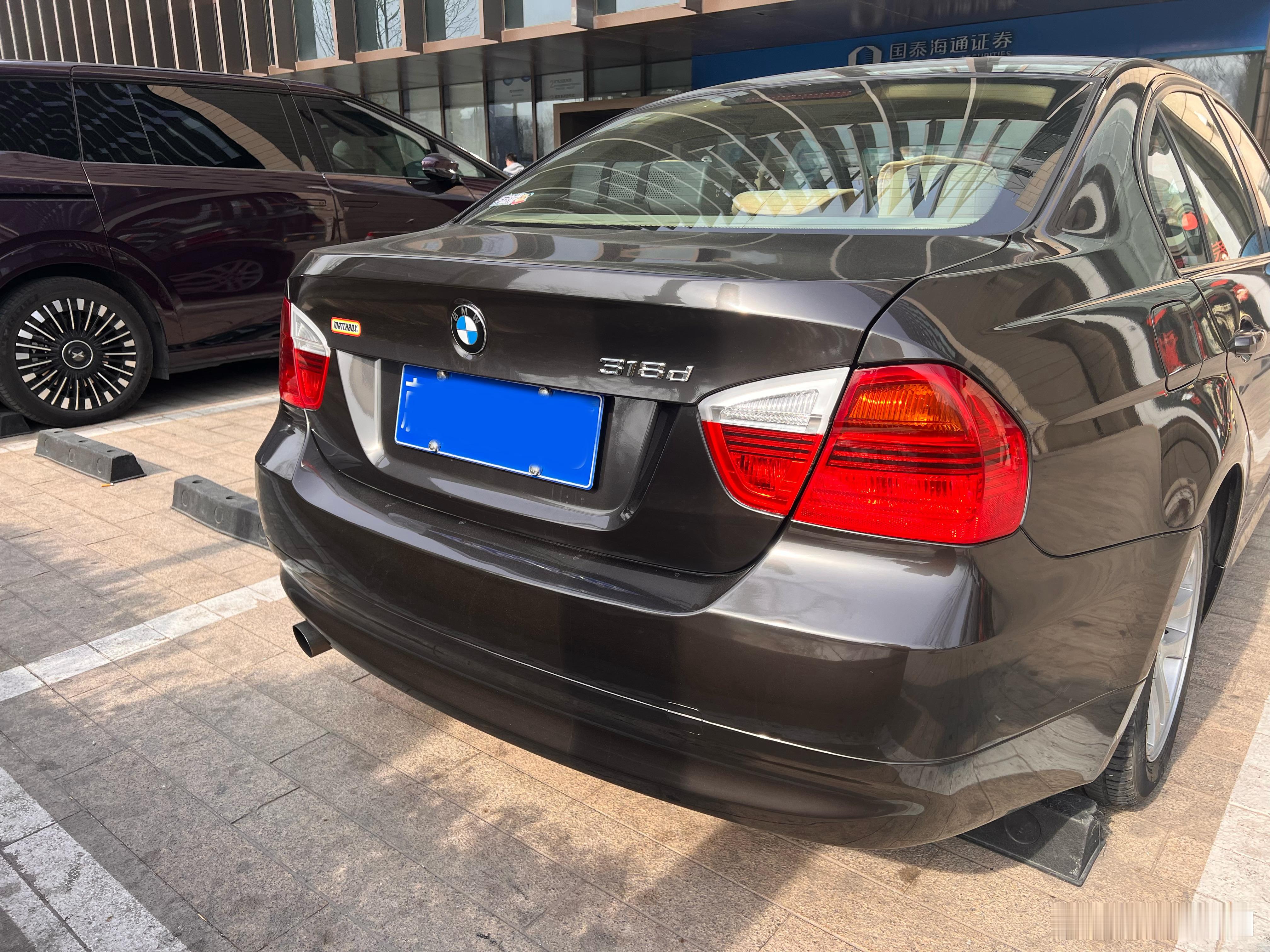 我去,闪闪发亮、外观毫无岁月痕迹的宝马手波E90!尾部的318d和火柴盒贴纸应该都是玩儿,看内饰和转速表应该是2.0+6MT的那批华晨的320i。