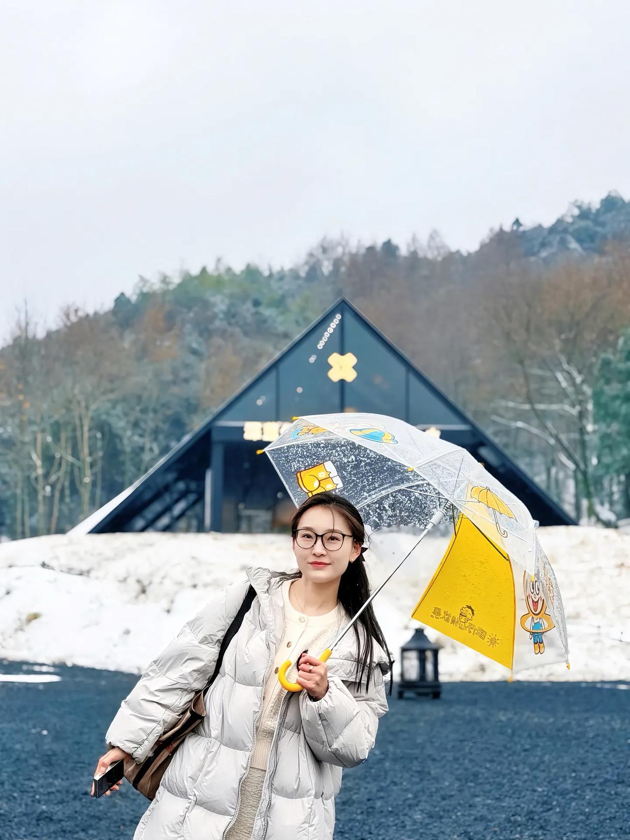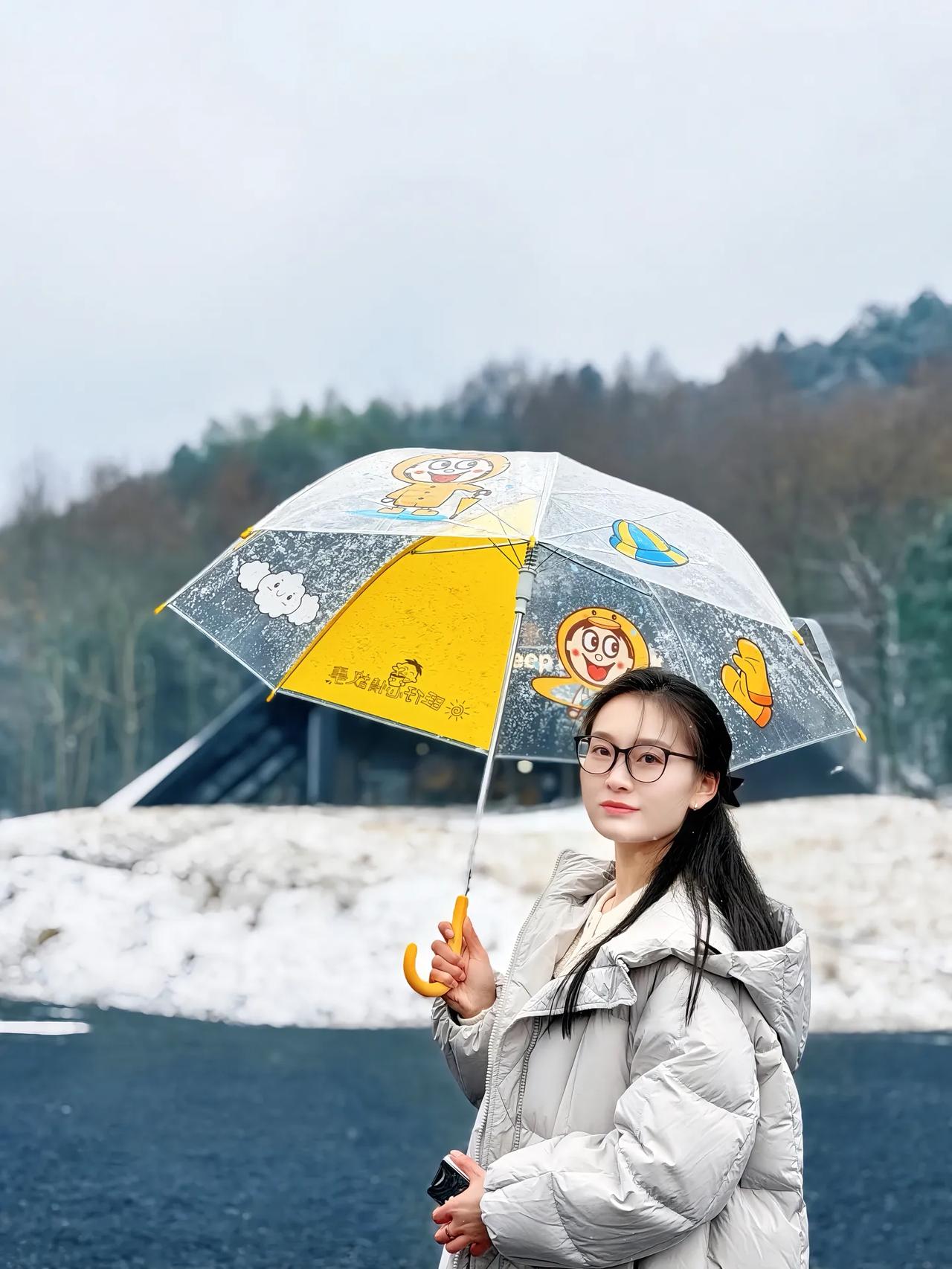 冬日漫步,雪中撑伞,温暖相伴
