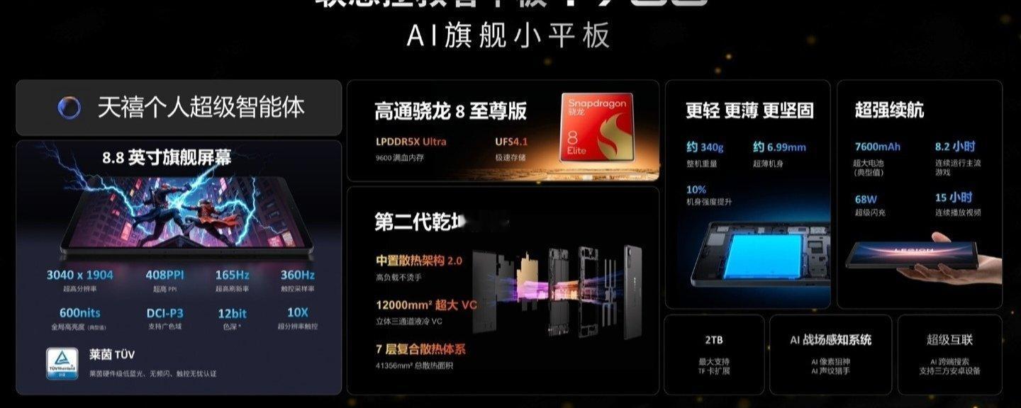 【联想 AI 平板拯救者 Y700 屏幕参数公布:8.8 黄金尺寸、165Hz 超高刷新率】