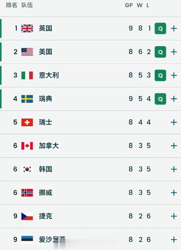最后一轮,美国将对决意大利,若美国赢则半决赛对阵为英国-意大利,美国-瑞典;若意大利赢则对阵为英国-瑞典,意大利-美国。