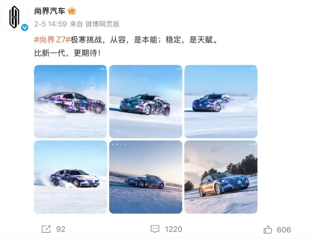 尚界汽车辟谣Z7冬测图片为AI生成:均为实拍。