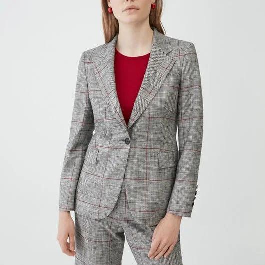 前两天在开会的时候,西班牙王后莱蒂齐亚穿了件来自她最爱品牌carolina herrera的格子西装外套 这件外套她大概在2020年购入,搭配黑色的里搭。然后到了2022年,她长女莱昂诺尔借穿了一次,搭配红色高领里搭 而这次莱蒂齐亚再穿搭配的则是鲜红色的圆领里搭,跟模特的穿搭最像 这款西装外套很适合出席会议类的公务,很适合莱蒂齐亚日常,不过如果是她才十来二十岁的闺女穿,就显得有些太过老气了
