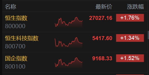 格隆汇2月9日|港股三大指数集体上涨,恒生指数涨1.76%重回27000点上方,国企指数、恒生科技指数分别上涨1.52%及1.34%。上周五美股大涨,以及金银等大宗商品止跌回升,市场情绪转好。