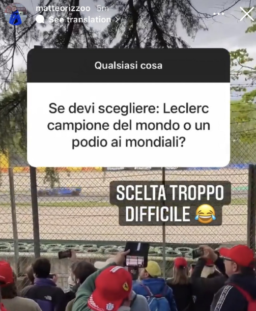 据报道称,里佐是勒克莱尔的粉丝,在2022年马蒂奥-里佐去现场观看法拉利比赛,粉丝问他:“你选择自己拿奥运奖牌还是勒克莱尔WDC?只能二选一”。里佐回答道:“太难选了。”