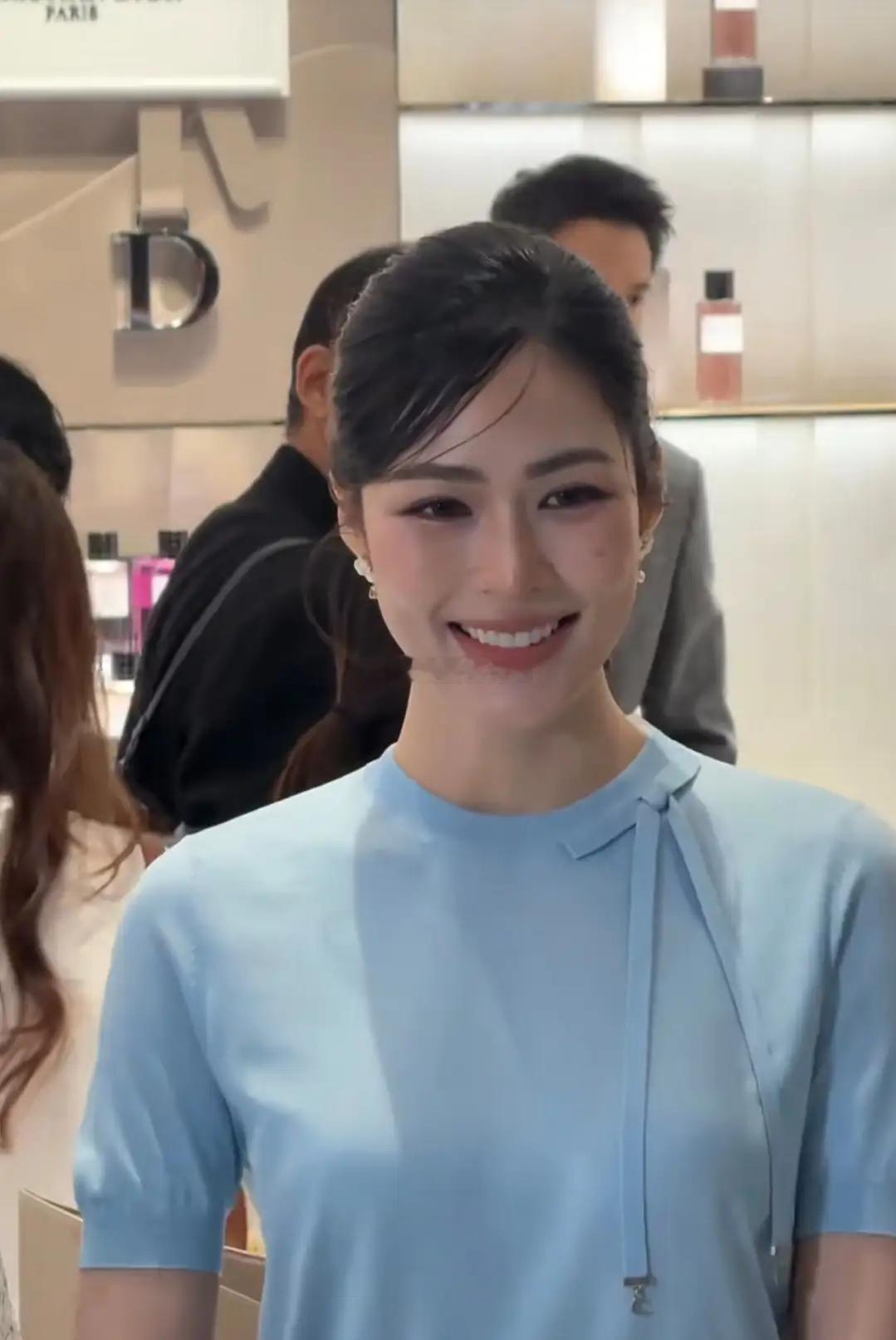 娱乐圈近期动态速递邝玲玲穿蓝色碎花裙参加线下活动,笑容甜美,优雅迷人!