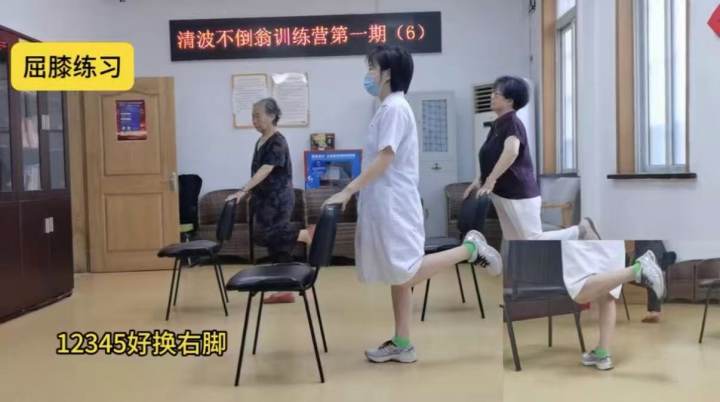 全套防跌倒训练操也可去清波中心防跌倒门诊咨询。陈医师强调,训练的时候,老人不能单独一人在家训练,因为训练过程中也有可能出现跌倒伤害的可能性,要有人陪同。训练最好每周能坚持三天,每天训练时长至少10分钟,最好能有30分钟,可分次完成,中途也可以休息。