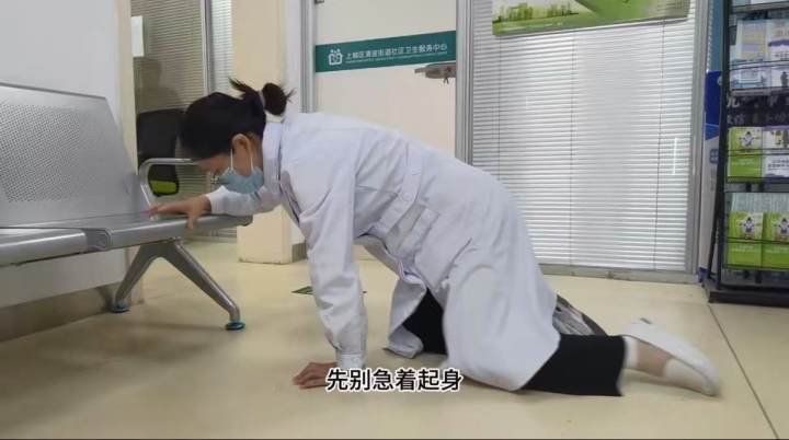 陈医师指导,跌倒后先别急着起身,缓慢移动到固定物旁,借助固定物的支撑,先慢慢跪立,再扶住固定物起身。如果无法起身,又在室内,那么尽量移动到窗边、门口等显眼处,用物品敲击地面,大声呼救,保持体力,等待救援。