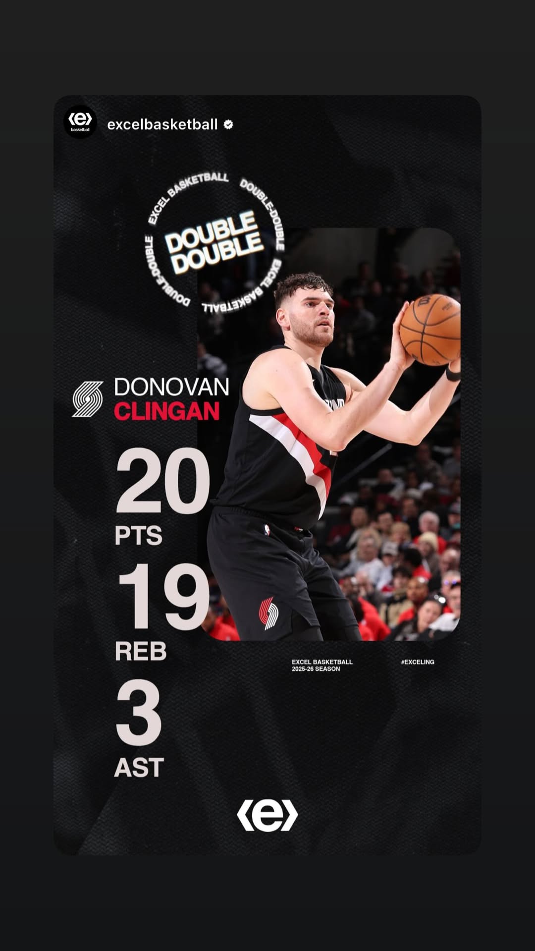在昨日开拓者以122-115击败灰熊的比赛中,多诺万-克林根得到了20分19篮板3助攻。
