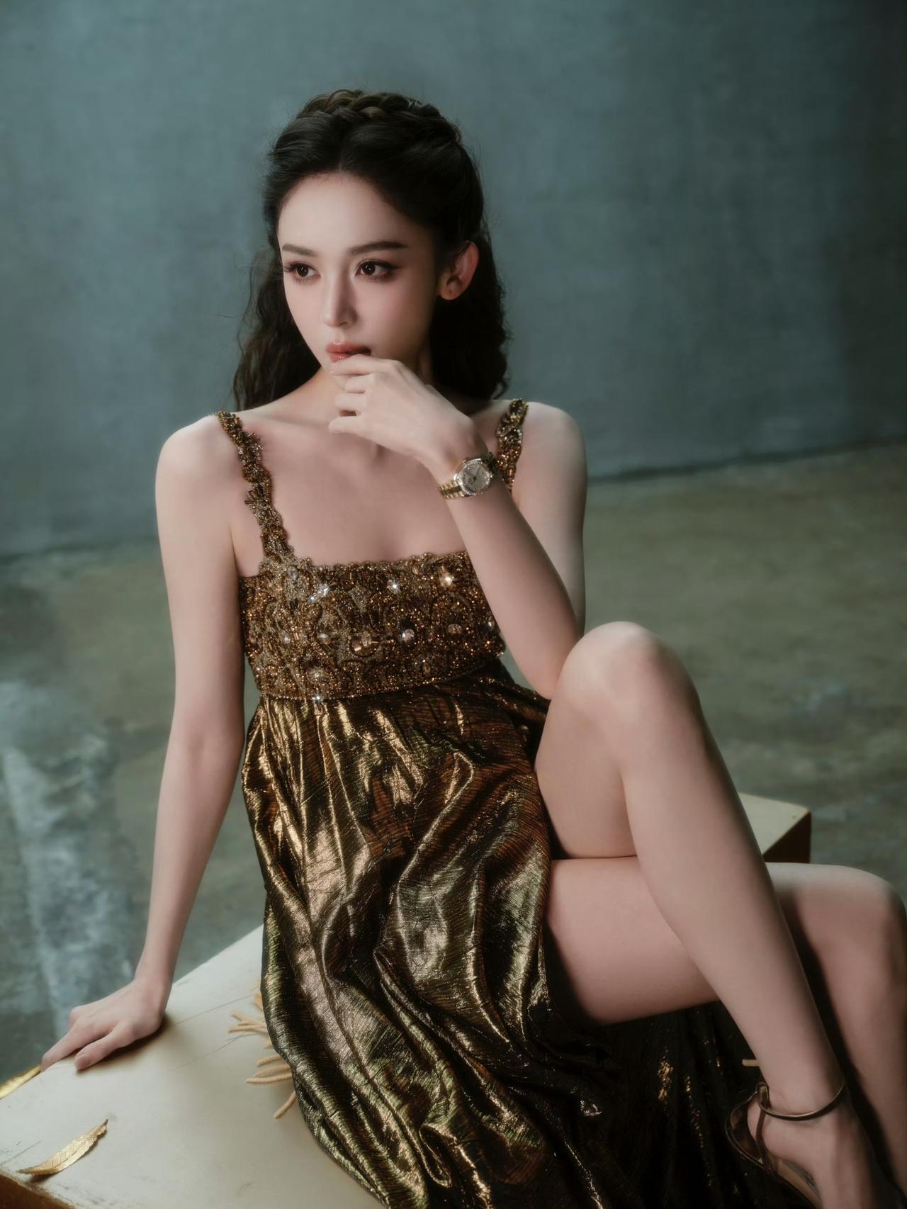 娜扎吊带高叉礼裙高跟