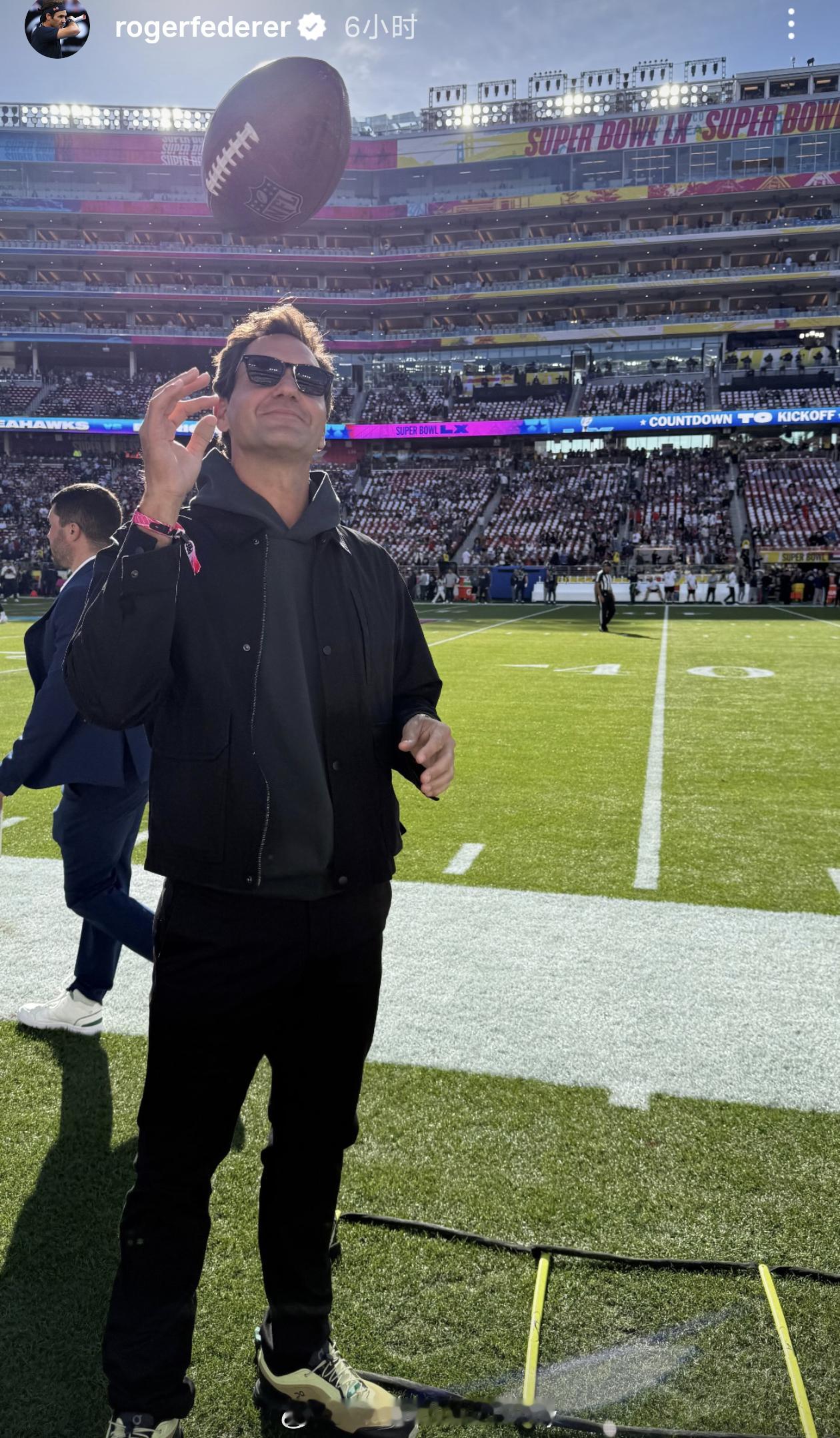 费德勒观战超级碗网球的优雅王者,今日现身橄榄球的终极战场!🎾→🏈超级碗