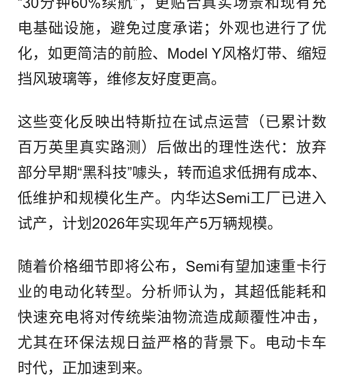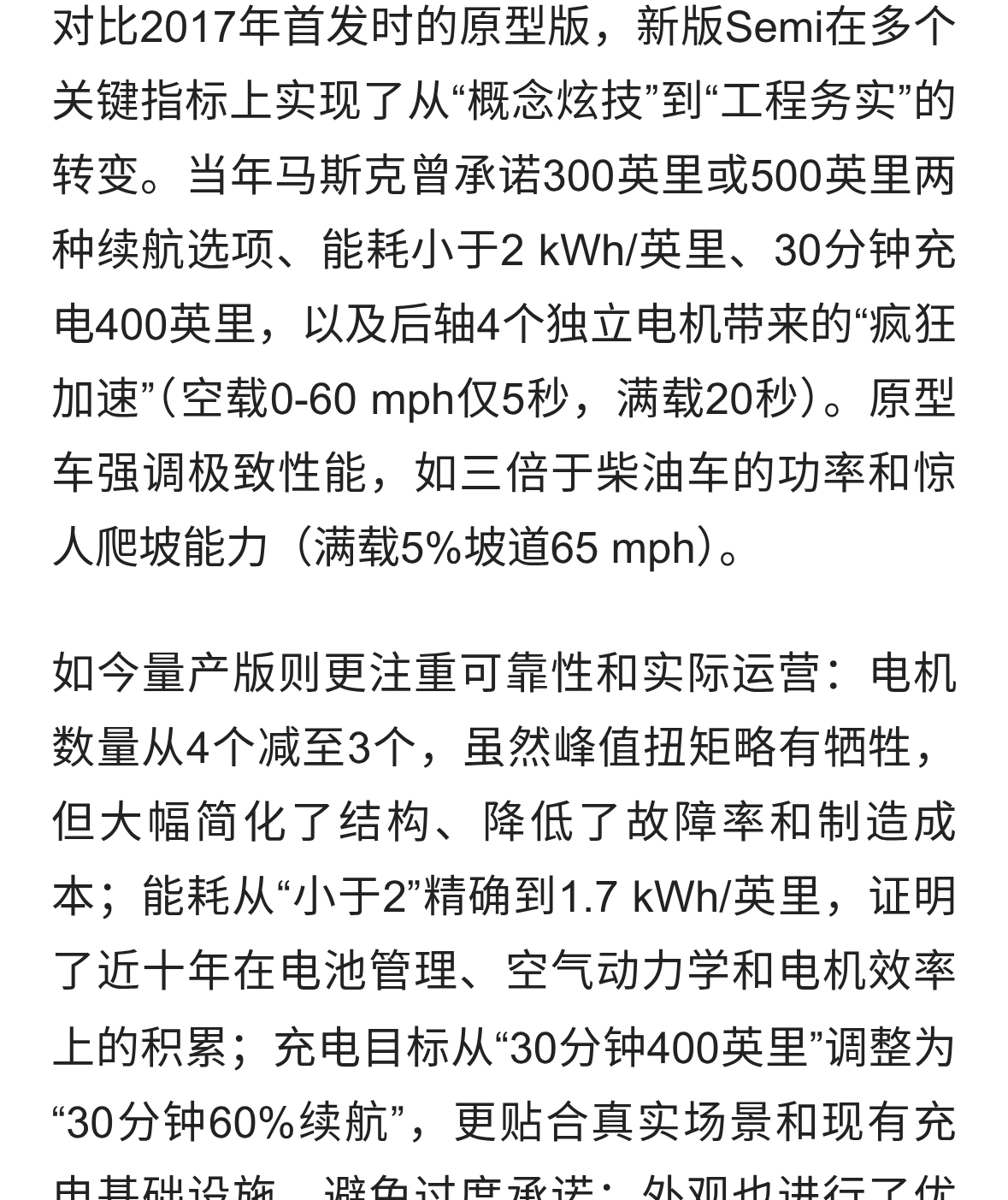 特斯拉Semi量产版规格正式公布:能耗低至1.7 kWh/英里