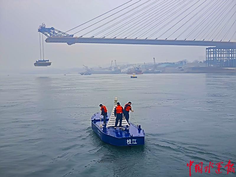 近日,世界最大跨径钢—UHPC组合梁斜拉桥——枝江百里洲长江大桥进入钢箱梁吊装关键施工阶段,为统筹保障重大工程建设与春运期间航道安全畅通,长江宜昌航道局主动靠前服务,积极对接施工单位,协同海事部门,为大桥钢箱梁吊装作业的安全、有序、高效推进提供护航保障。